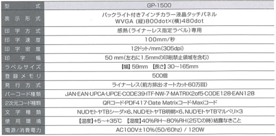 ラベルプリンター GP−1500 |