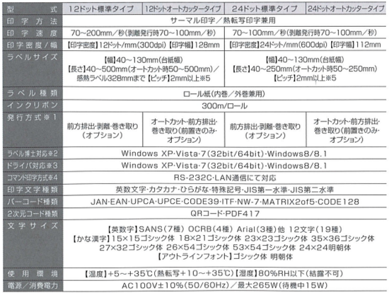 | ●ネットワーク型専用プリンター。 ●印字密度300dpi(12ドット)と600dpi(24ドット)から選択可能。 ●ディスプレイ表示でプリンター状態やエラー内容を文字で表示。 ●ラベル博士(4.7バージョン以降)対応。 ●Windowsドライバ対応。 ●外形寸法:297(W)×481(L)×338(H)mm ●基本仕様 ![]() ※詳しくは、メーカー製品情報をご確認ください。 http://www.teraokaseiko.com/jp/products/PRD00106/ 価格表 (本体価格は税抜)
